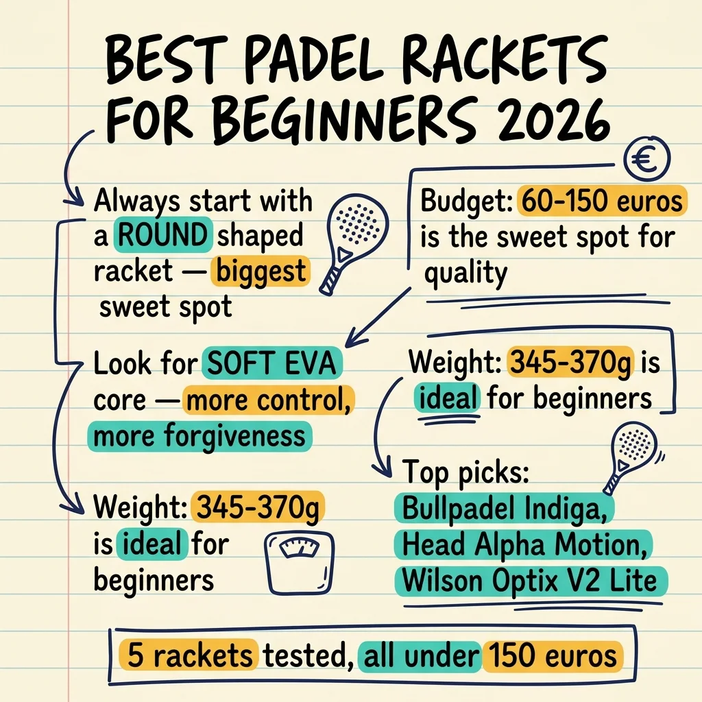 Guía con las 5 mejores palas de pádel para principiantes en 2026 — qué buscar, qué evitar y las palas que te ayudarán a empezar bien.